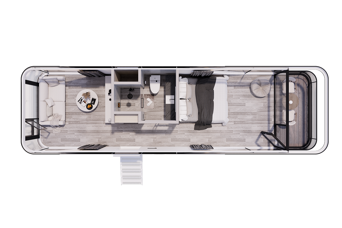 V系列铝屋采用了创新的模块化结构设计,这使得它能够快速组装和拆卸,大大缩短了建设周期并提供了极高的灵活性,使得房屋能够迅速适应不同的环境和需求;而且V系列的每个模块都是独立且自给自足的单元,这意味着如果某个模块出现问题,可以单独更换或修理,而不需要对整个房屋进行大规模翻新;另外,我们充分考虑了居住者的生活品质。铝材质的轻质和高强度特性,采用特殊的隔热材料,使得V系列在保温、隔音和节能方面表现卓越。居住者可以在这样的环境中享受到宁静和私密。V系列,以其科技创新的设计理念,不仅提供了一个高效、舒适、环保的居住空间,更代表了一种对未来生活方式的探索和承诺。