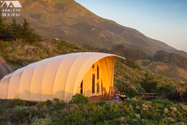 其次是帐篷酒店设计的多样性,它可以因地制宜定制独一无二的款式。于相对空阔的地方可以搭建若干个球形星空帐篷,让喜欢瞭望星空的人选择。依山傍水处可搭建野奢型篷房,让乐山者乐山,乐水者乐水。甚至于山巅悬崖峭壁处还可搭建野奢船形篷房,风清云淡,一览众山小。