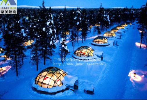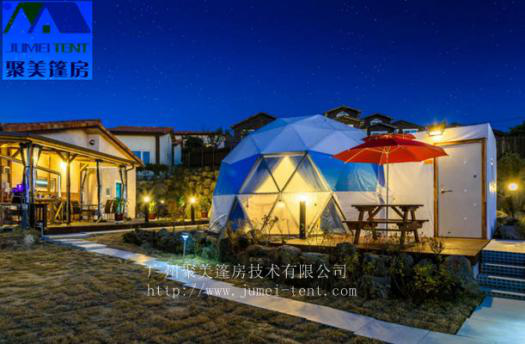 其实,近年来国内商家也受逐渐意识到帐篷酒店给旅游行业带来的巨大商机。帐篷酒店独特优美的造型,多变的篷布风格设计,使篷房酒店可动感玲珑,通透明朗,亦可绚丽多彩。就星空帐篷酒店来说,圆形顶的先进设计使得整个空间既别致又方便而安全,其万变的外观,不变的品质,其先进的结构设计使得搭建更为快捷,同时更有效的提高搭建安全。