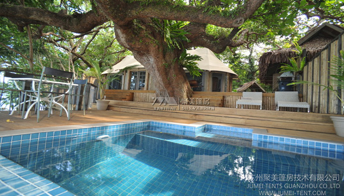 虽在野外,但Wifi,空调,大床,暖气,泳池浴室等星级酒店必备的设施野奢酒店同样昌具备的,甚至更具风情。